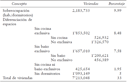 extensiones familiares y hogares extras (8 millones); c) el déficit cualitativo, es decir, el