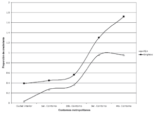 crecimiento demográfico, a pesar de su incremento proporcional de empleos. Por