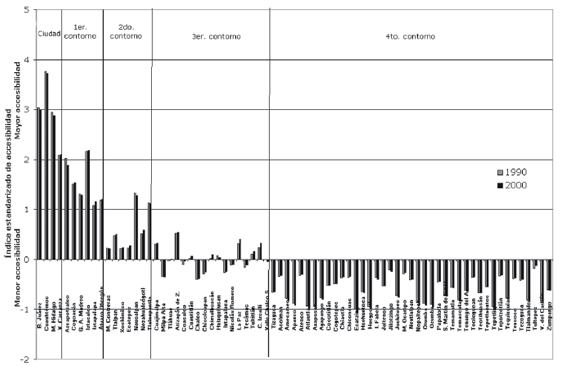 que, cualquiera que sea la forma urbana hacia la que transita la zmcm, la accesibilidad a empleos ha