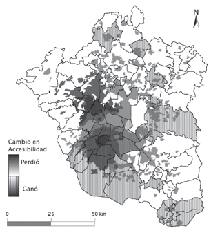 mediante análisis gravitacionales de accesibilidad a empleos, que este supuesto