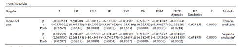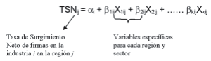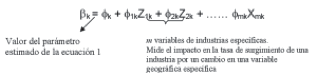 [25] Las variables utilizadas en este modelo fueron: el tamaño de las firmas (como proxy de la estructura de la industria en las regiones), el crecimiento poblacional, el ingreso per cápita, la tasa de desempleo, la concentración industrial y el logro educativo.