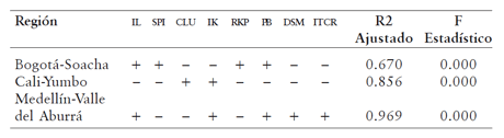 [10] Los resultados de la investigación Ciclo de vida y localización espacial de las firmas en Colombia 1995-2000 son para seis regiones colombianas. En este artículo, los resultados se presentan para las tres arriba mencionadas. Los resultados globales se presentan en el anexo del artículo.