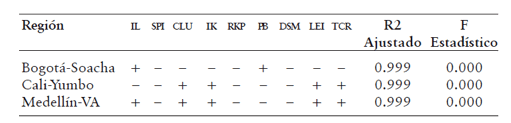 [24] Las bases de datos y su estructuración para la modelación generaron algunas dificultades en la calidad y cantidad de los datos, lo que limitó el tipo de método que podría utilizarse en el momento de realizar las predicciones. En este caso, se encontró: 1) poca homogeneización de la información disponible; 2) diferencias regionales y sectoriales en el tipo de variables construidas; 3) en el ámbito de las economías regionales en Colombia no existe información oficial por tamaño de firmas; 4) la construcción del dato, y 5) la heterogeneidad estructural de las regiones y de los sectores en Colombia.