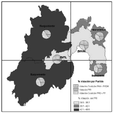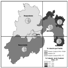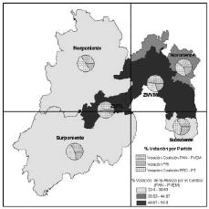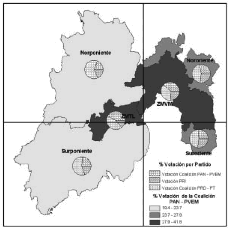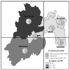 referencia a pautas de distribución geográfica de los votos que, como lo