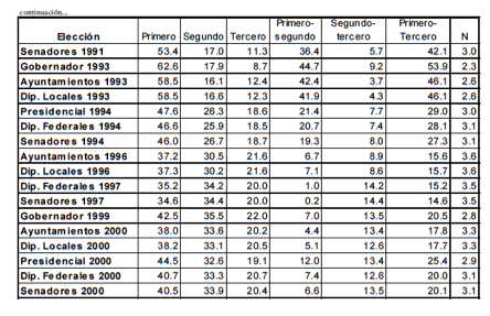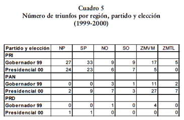 2000 se produjeron diferencias notables. Baste recordar que el pri perdió, en