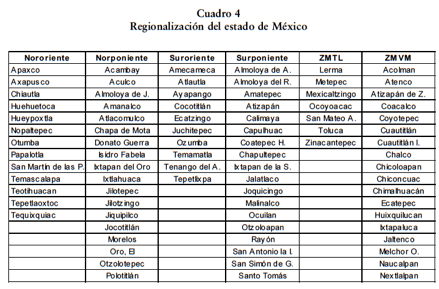 regiones. Esta regionalización surgió de dividir al Estado de México en cuatro