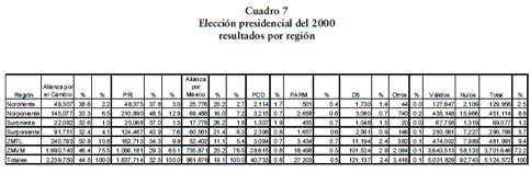 síntesis se puede afirmar que la elección presidencial de 2000, si bien produjo