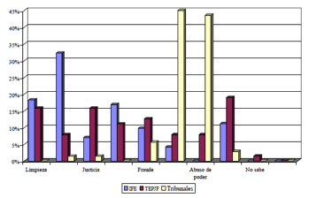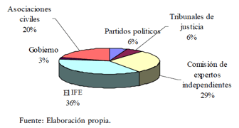 [18] Aunque a lo largo del documento sostengamos que el ife es un ejemplo de construcción de identidad positiva, el hecho de que exista confusión entre éste y el tepjf denota que la identidad del ife tampoco está plenamente consolidada. Esto nos hace pensar la hipótesis –que no desarrollaremos en este trabajo– de que el ife mantiene cierta centralidad en el cambio político mexicano por lo que monopoliza la visión acerca de lo electoral, dificulta la construcción de identidad para otras instituciones y hace que su ausencia de identidad completa no revierta en problemas de identificación tanto como de identificación basada en conocimientos reales.
