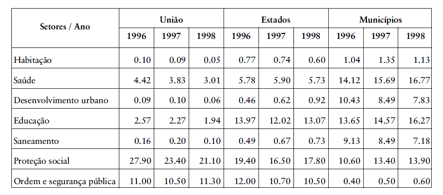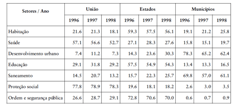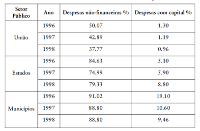 public expenses in the Brazilian Federation in the period 1996-1998 in order to