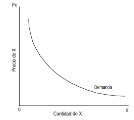 La pendiente negativa de la curva representa la relación inversa entre cantidad