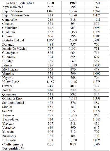 diferencias regionales del ingreso en México