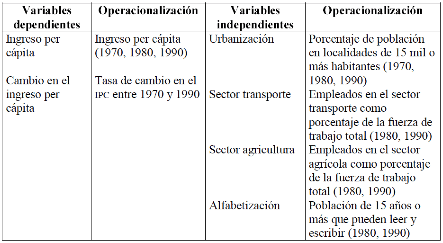 variables explicativas de las diferencias regionales, y (3) que después de la