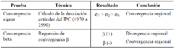 tendencia a la convergencia regional en los niveles de IPC. Encuentra evidencia