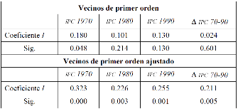 se demostró con dos tipos de vecindad geográfica: de primer orden y de primer
