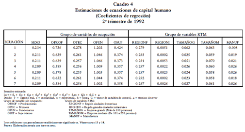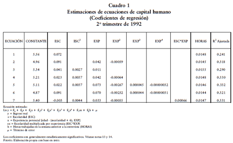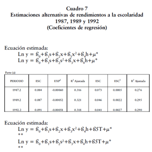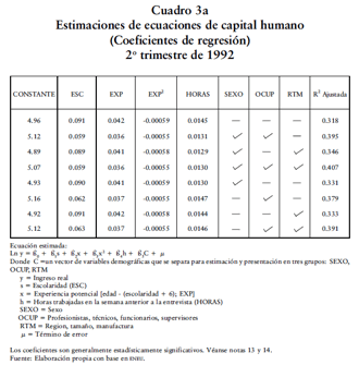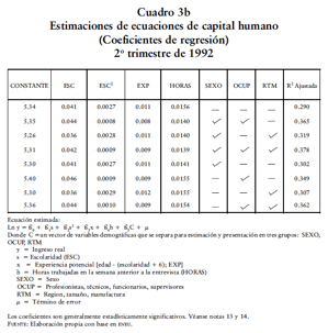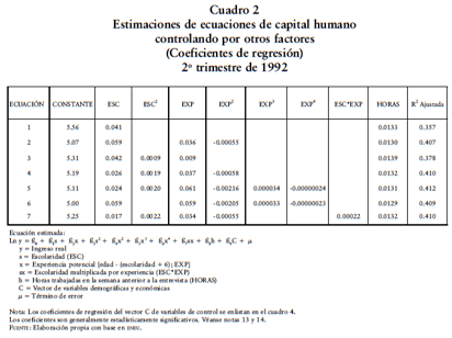 los resultados de formulaciones alternativas de la ecuación de capital humano.