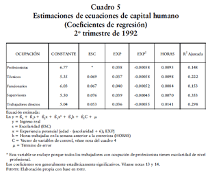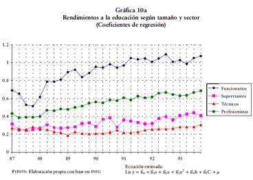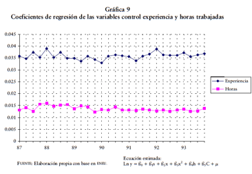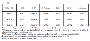 coeficiente de experiencia y eleva el de escolaridad. Estos resultados no se