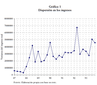 ingresos al trabajo durante el periodo de 1987 a 1993.