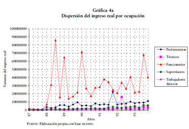 en el interior de las ocupaciones. En la Gráfica 4 se muestra la varianza de