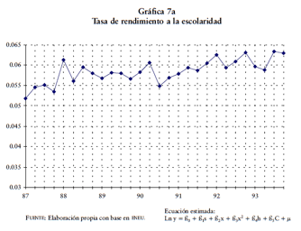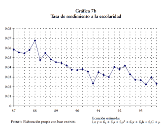 (1974) estima tasas de rendimiento a la educación de hasta 22 por ciento usando