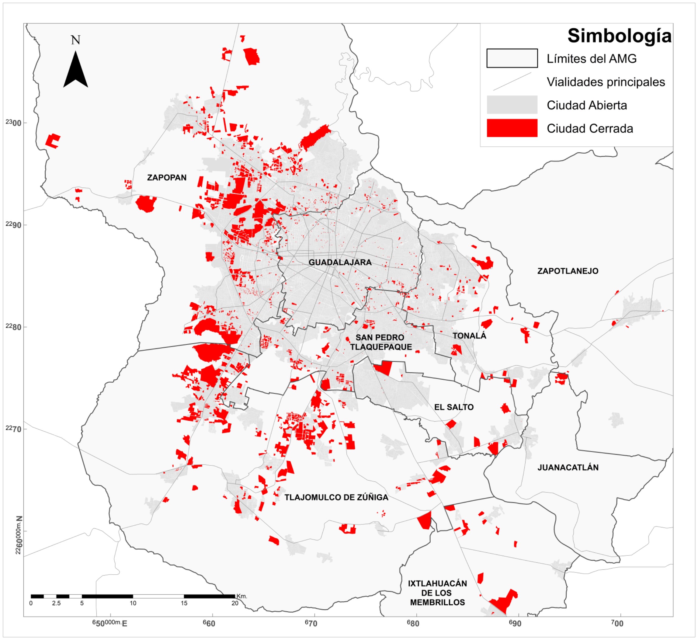 El Área Metropolitana de Guadalajara ha pasado por una serie de procesos que la llevaron a convertirse en una metrópolis, donde el fenómeno de las urbanizaciones cerradas tomó relevancia significativa, lo cual implica un resultado directo de la falta de planeación urbana. Las facilidades que encontró el sector inmobiliario le permitieron posicionarse como principal actor en el proceso de construcción urbana, logrando que en el 2016 la ciudad contara con 2973 fraccionamientos de acceso restringido. Es un fenómeno que requiere la reinterpretación del espacio público de la ciudad y de sus espacios de uso colectivo.