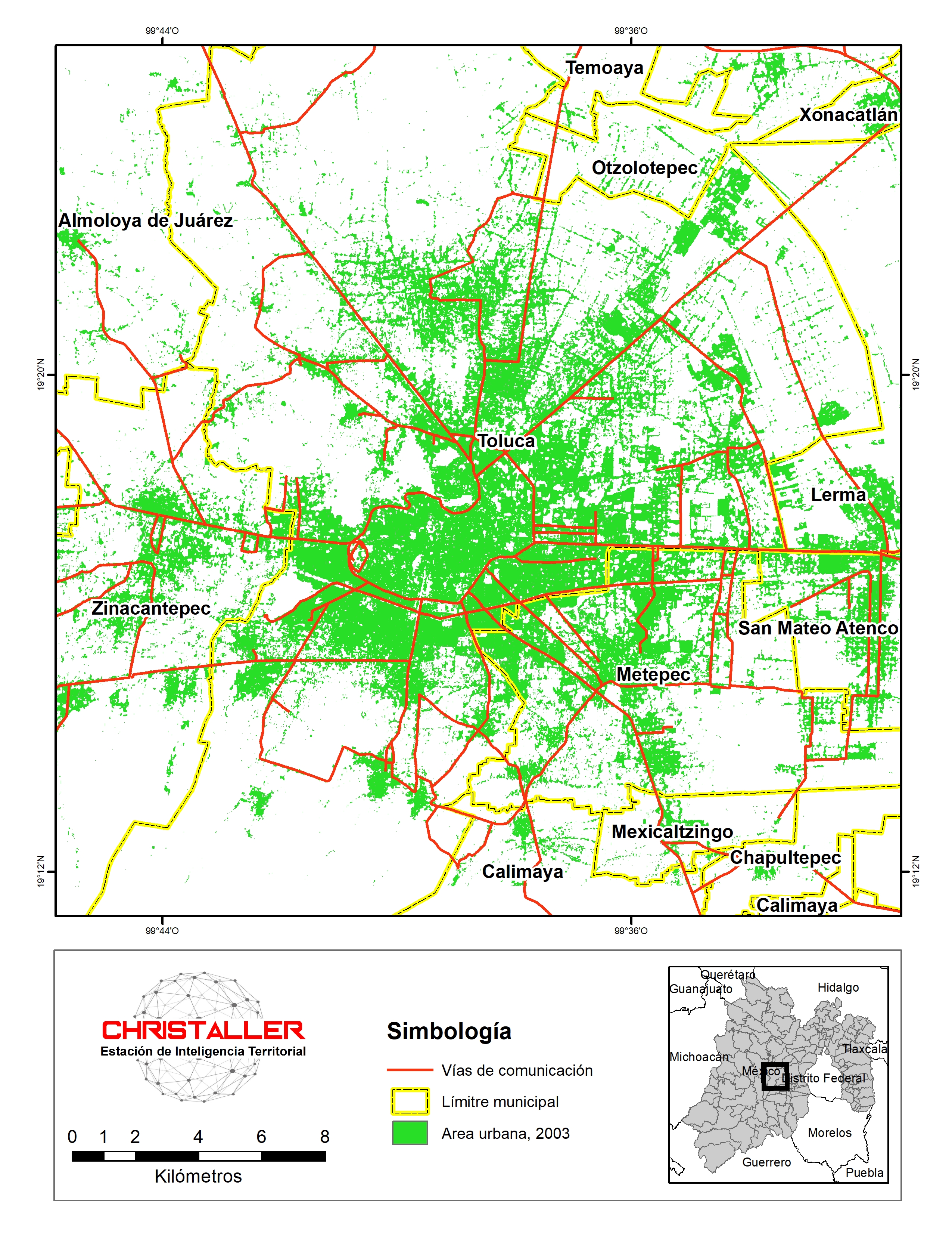 Jiménez, Eduardo; Carlos Garrocho y Tania Chávez (2018), “Modelando la expansión urbana con Autómatas Celulares: aplicación de la Estación de Inteligencia Territorial (CHRISTALLER®)”, Geogra- fía y Sistemas de Información Geográ ca (GeoSig), 12 (10), Instituto de Investigaciones Geográ cas-Universidad Nacional de Luján, Luján, Argentina, pp. 1-26.