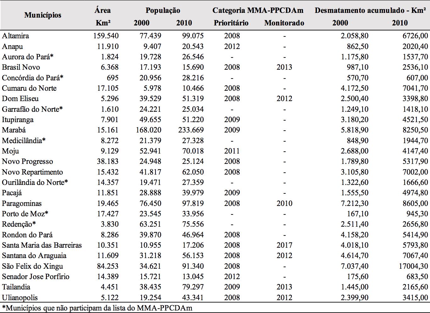 Bizzo, Eduardo e de Farias Assunção André Luís (2017), “Priorização de municípios para prevenção, monitoramento e controle de desmatamento na Amazônia: uma contribuição à avaliação do Plano de Ação para a Prevenção e Controle do Desmatamento na Amazônia Legal (PPCDAm)”, Desenvolvimento e Meio Ambiente, vol. 42, Curitiba, Universidade Federal do Paraná, <https://revistas.ufpr.br/made/article/view/53542>, 28 de agosto de 2018.